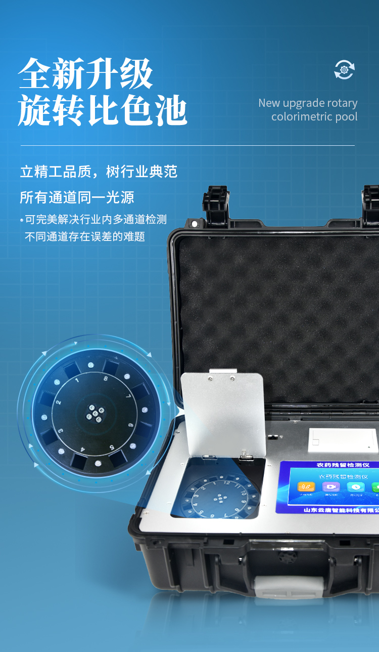山東云唐智能科技有限公司生產(chǎn)的農(nóng)藥殘留檢測儀廣泛應(yīng)用于主要用于蔬菜、水果、茶葉、糧食、農(nóng)副產(chǎn)品等食品中農(nóng)藥殘留的快速檢測,依據(jù)國標(biāo)GB/T5009.199-2003進行檢測,適用于果蔬茶生產(chǎn)基地以及農(nóng)貿(mào)批發(fā)銷售市場現(xiàn)場檢測,餐館、學(xué)校、食堂、家庭果蔬加工前的安全速測等。