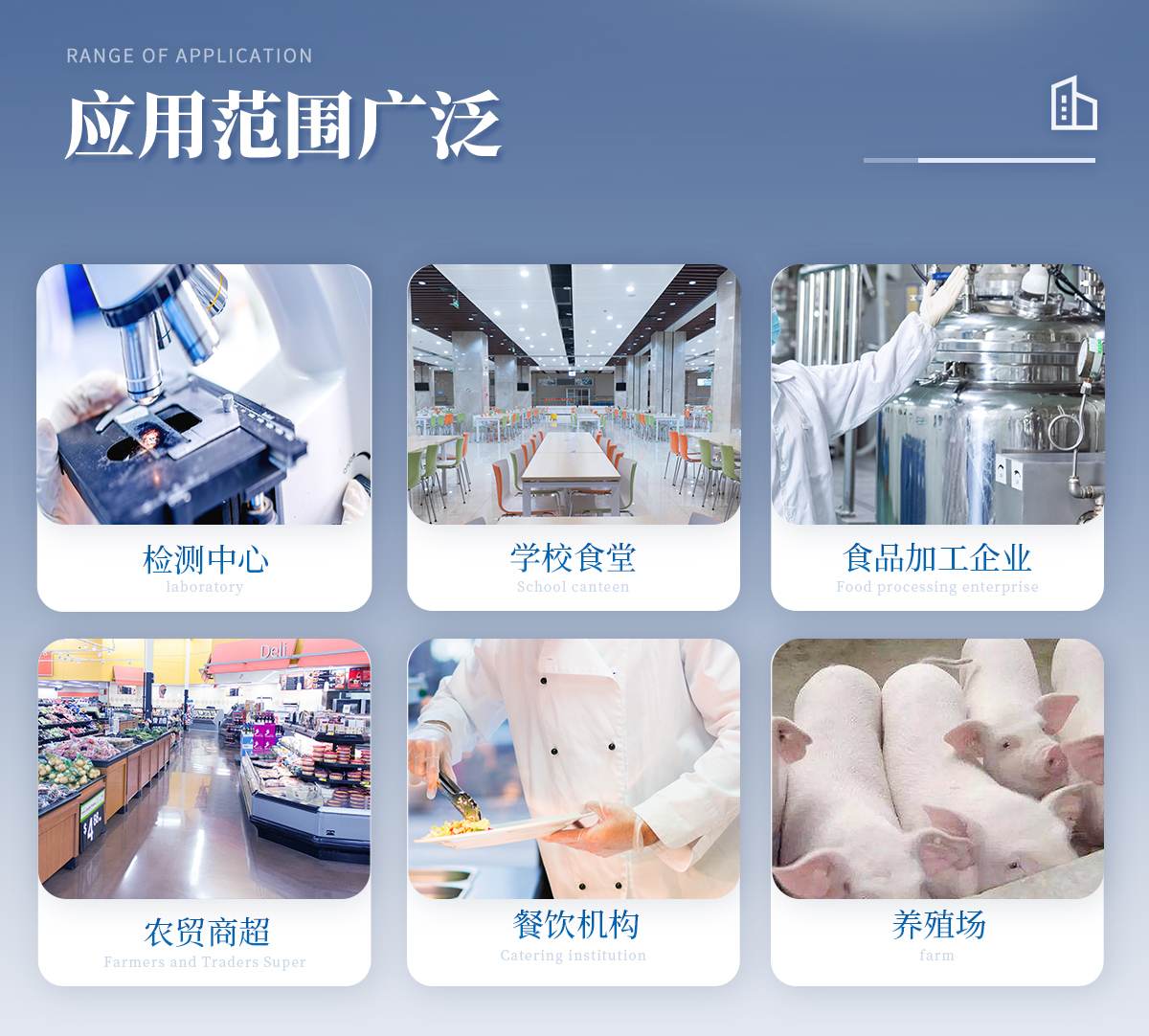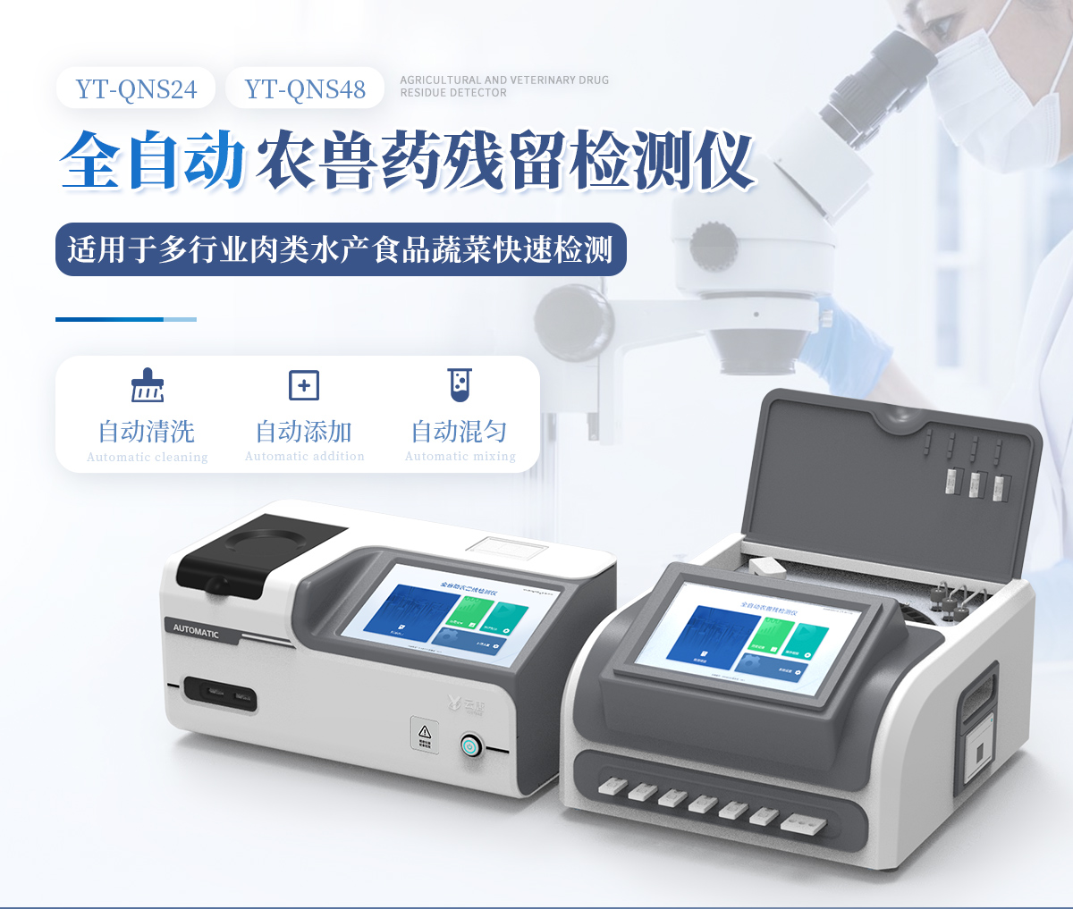全自動農獸藥殘留檢測儀可對各種蔬菜水果中有機磷和氨基甲酸酯類農藥殘留;各種肉類水產食品中瘦肉精激素類殘留,抗生素殘留,獸藥殘留,水產品藥物殘留等百余種項目進行快速檢測。該設備廣泛應用于蔬菜批發市場、超市、商場、食藥監等部門的蔬菜和水果中的農藥殘留檢測。