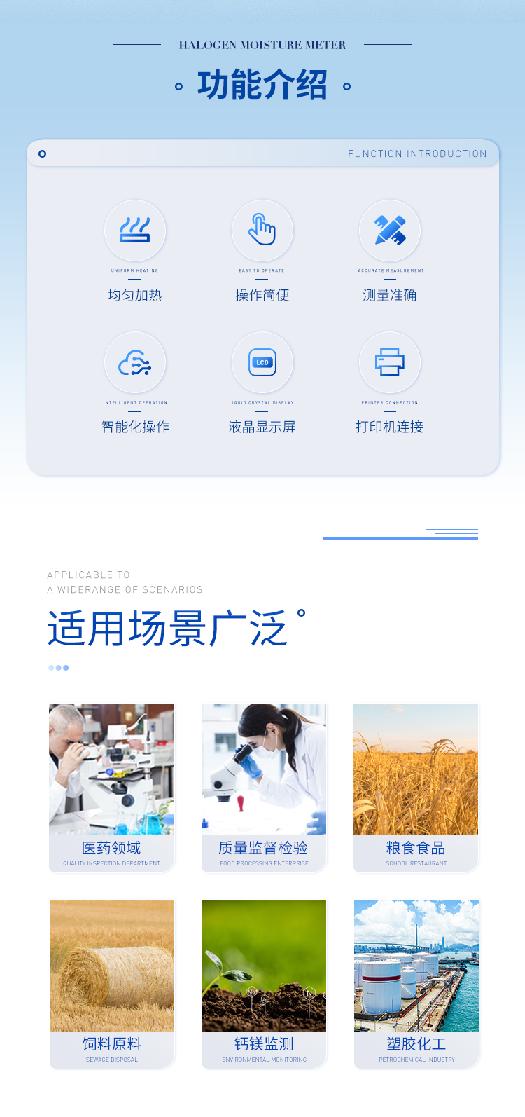 鹵素水分測定儀用于如:醫藥、塑膠、化工、食品、糧食、飼料、鈣鎂、質量監督檢驗、等各行業中的生產過與實驗過程中, 具有良好重··· 熱線:133-7109-8225