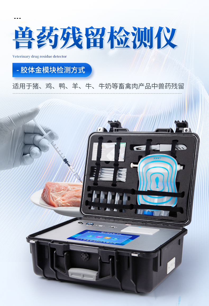 金標度數儀快速定量檢測獸藥殘留、抗生素類殘留、激素類殘留、毒素類殘留,化學類殘留等幾十種項目并可根據用戶需要擴充新的檢測項目如農藥殘留、食品添加劑、色素、可現場快速檢測農藥殘留、鹽酸克倫特羅、沙丁胺醇、萊克多巴胺、四環素類、硝基呋喃類、磺胺類、沙星類、氯霉素、孔雀石綠磺胺類、豬藍耳病毒、豬瘟病毒、黃曲霉毒素B1、豬偽狂犬病毒、豬偽狂犬病毒gE蛋白、豬口蹄疫3ABC蛋白、豬口蹄疫病毒IgG、豬細小病毒、雞禽流感等定性和定量快速檢測等、并且可以連接食品安全監控系統。