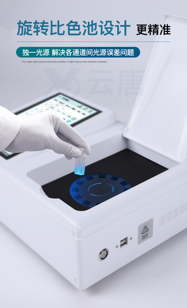 4、檢測(cè)通道:≥24通道;采用精密旋轉(zhuǎn)比色池設(shè)計(jì),使用同芯片同光源校準(zhǔn)精度,解決不同光源之間的誤差值,更加準(zhǔn)確**。(1-12通道間誤差0.1%,***:**202022821055.2)