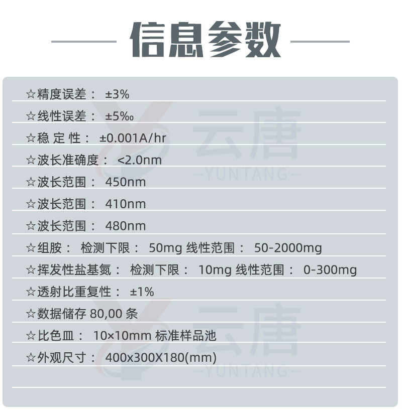 可快速檢測病害肉、組胺、揮發性鹽基氮,儀器預留其他項目檢測程序和端口,根據日后需求可方便的自主增加檢測項目。